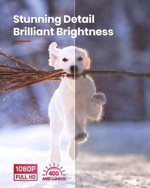 • Breathtaking Visuals: With FHD 1080p resolution, a 120-inch image, 400 ANSI lumens, and HDR10 all packed into a single sleek device, you can recreate the sights of the cinema from the comfort of your couch.